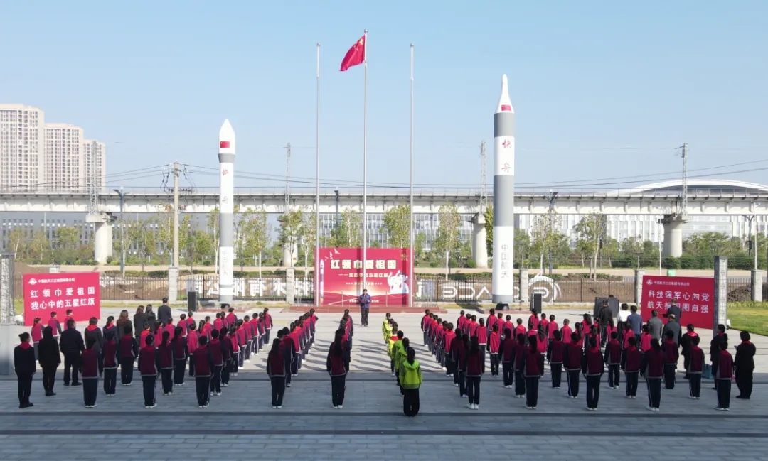 10月23日,由全國少工委聯(lián)合中國載人航天工程新聞宣傳辦公室舉辦的“紅領(lǐng)巾愛祖國——我心中的五星紅旗”國旗傳遞活動,在湖北武漢國家航天產(chǎn)業(yè)基地快舟火箭產(chǎn)業(yè)園舉行。共青團(tuán)湖北省委領(lǐng)導(dǎo)、湖北省少工委、共青團(tuán)武漢市委、武漢市新洲區(qū)、航天科工九院及所屬火箭公司等相關(guān)負(fù)責(zé)同志及代表,武漢市新洲區(qū)雙柳街中心小學(xué)、武漢市十一實驗學(xué)校少先隊員、少先隊輔導(dǎo)員代表,共計100余人參加活動。