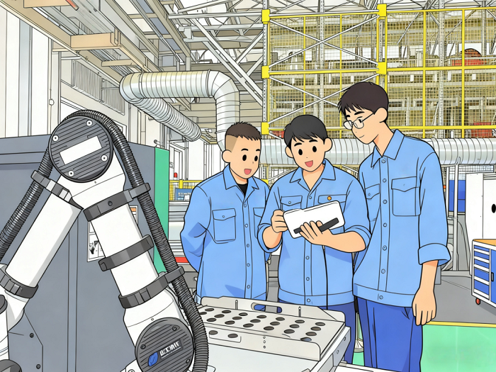 產(chǎn)品加工時(shí),不同刀具需要頻繁切換,手工換刀費(fèi)時(shí)費(fèi)力,生產(chǎn)效率受滯。青年車(chē)工小張?jiān)谟^看協(xié)作機(jī)器人視頻時(shí)受到啟發(fā),在車(chē)間主任和師父的支持下,一臺(tái)“雙料盤(pán)機(jī)器人”落戶(hù)車(chē)間。作為機(jī)械制造自動(dòng)化專(zhuān)業(yè)的畢業(yè)生,小張憑借專(zhuān)業(yè)基礎(chǔ)和鉆研精神,鉚足了勁要“專(zhuān)業(yè)對(duì)口、事半功倍”,啃下了自主編程調(diào)試的“硬骨頭”,讓機(jī)器人靈活適應(yīng)多樣化生產(chǎn)需求。