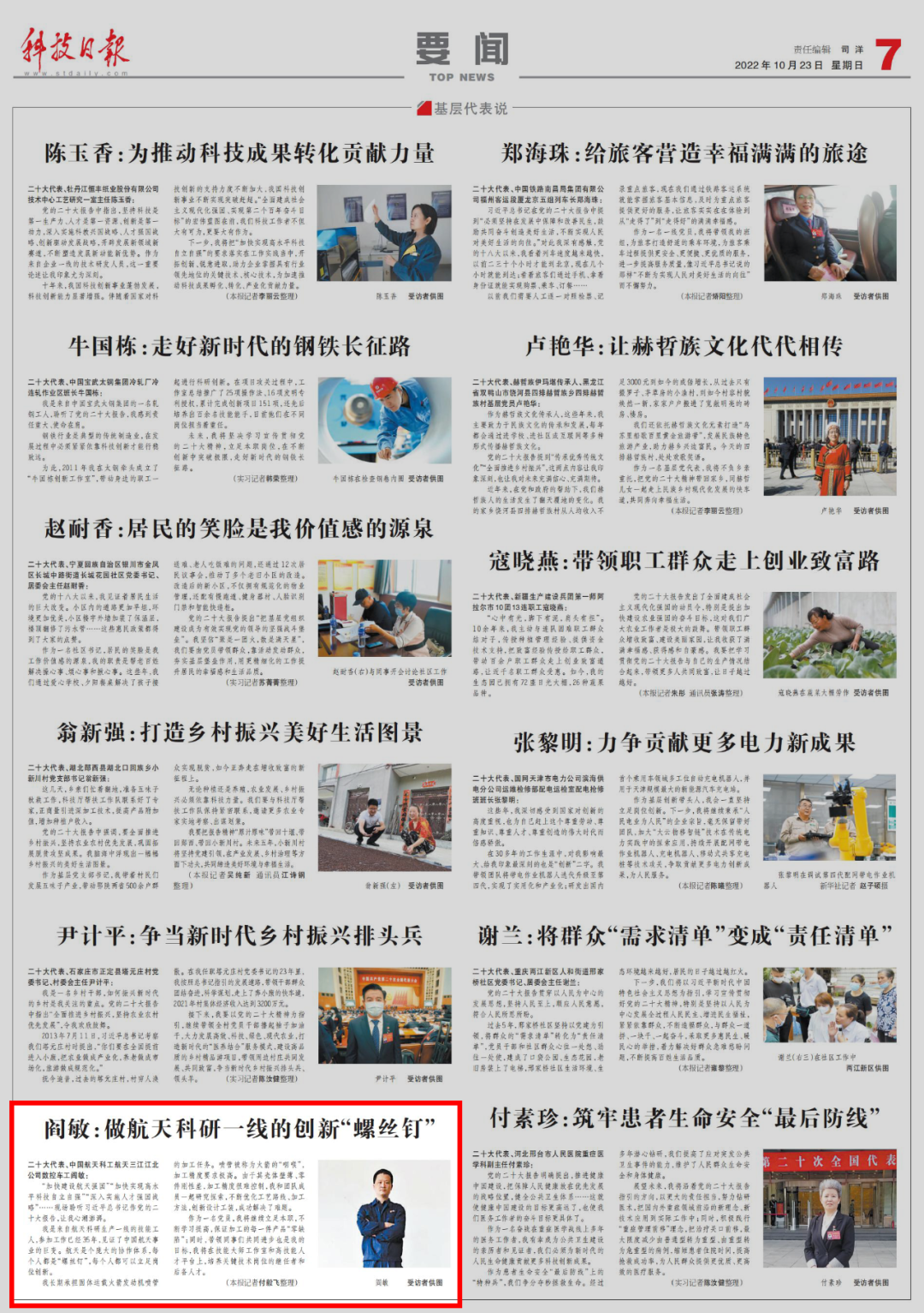 二十大代表閻敏:做航天科研一線的創(chuàng)新“螺絲釘”
