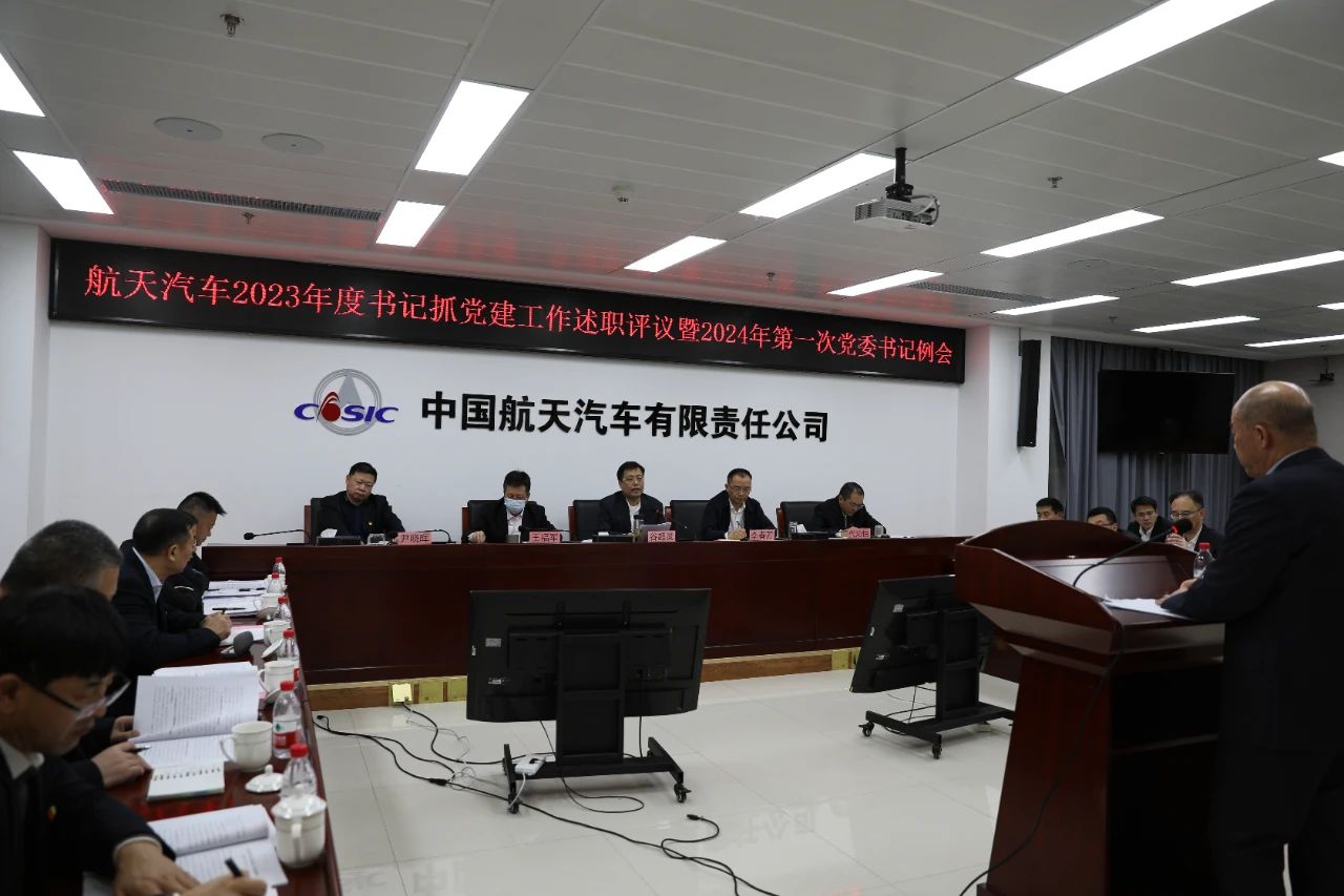 1月27日,航天汽車召開2023年度黨組織書記抓黨建工作述職評議會暨2024年第一次黨委書記例會。航天汽車領導班子成員,資深專務、集團公司第二批主題教育第三十五巡回督導組組長尹曉暉,本部各黨支部書記、各部門負責人、部分職工代表,所屬單位黨委書記、副書記、紀委書記和相關人員分別在本部主會場和各所屬單位視頻分會場參加會議。會議由航天汽車黨委書記、總經理谷超靈主持。