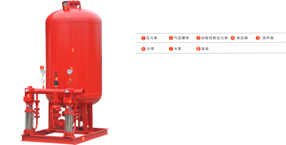 XZQ下置式消防增壓穩壓給水設備為消防滅火工程配套的設備,主要作用:保持水滅火管網的消防壓力,發生火警打開水滅火設備能立即噴出充實水柱,給報警聯動啟動大消防泵贏得30秒以上的初期滅火撲救時間