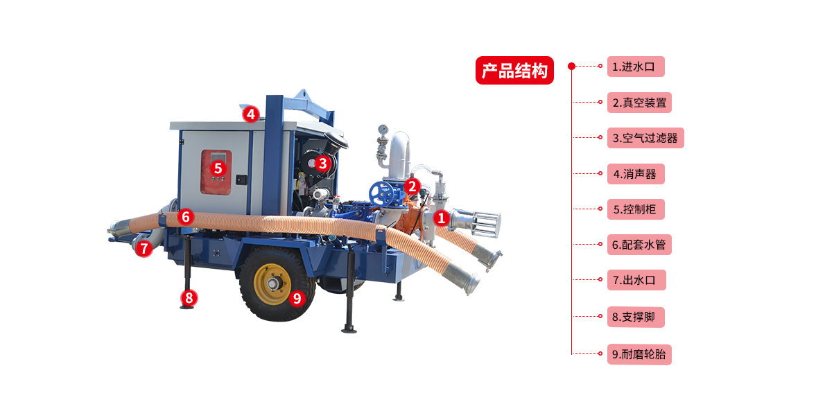 6)該泵還可以與移動搶險車進行配套,以達到臨時排澇抗旱搶險的目的。