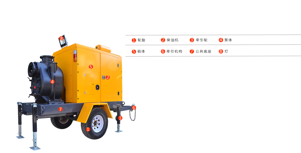 移動自吸泵車移動靈活,展開和撤收速度快,投入作業人員少,適應性強,勞動強度低,應急反應速度快,電機不接觸水,一直在地面只需要接好進出口管道即可投入使用,抗堵塞效果好,轉速低,使用壽命長,維修故障率低,可以抽吸含固率較大的液體,提高了城市救災應急的綜合保障性能,移動自吸泵車配空心輪胎、實心輪胎、帶牽引拖車帶手剎車和四腳立柱。具有啟動性好、過載能力強、結構緊湊、維修方便、使用簡單、自動化程度高等特點,是一種性能可靠的消防裝備。自吸泵車不必連接電源,在城鄉的道路、隧道搶險或者其它的緊急情況,都可以使用,還配有汽車底盤,非常靈活,機動性也非常強。因此,它既可以用來發電和排水,又可以用來吊裝貨物,其利用率也大大提高。